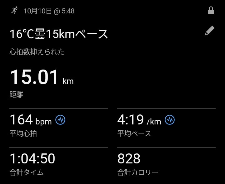 現状ハーフ90分切りペースは15km迄か? 更新日:2025年9月25日 公開日:2025年9月24日 ラン中富土通のランニング記録 今朝は10km走をやりました。昨年同時期(気象条件はほぼ同じ)に比べるとキロ10秒ほど遅い結果でした。感じからすると15㎞迄はハーフ90分切りのペースで無理をすれば走れそうです。逆に言えば、現状90分切りの走力はないとい […] 続きを読む